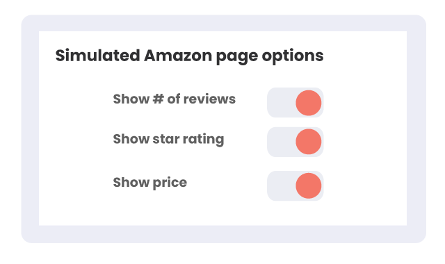 Instantly import your listing and competitors and change any variables such as main image, pricing, star ratings or number of reviews.